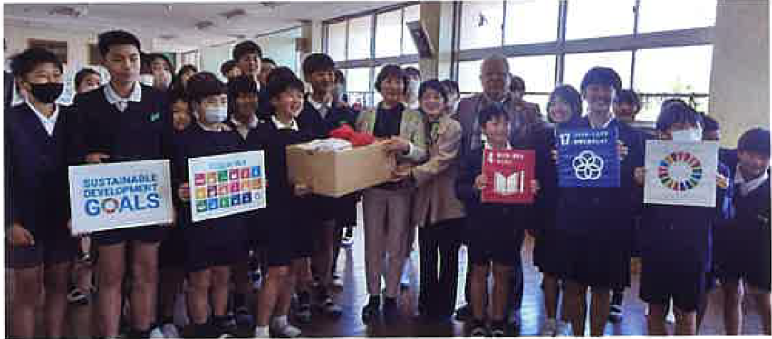 2024年3月27日(水)、築山小の6年生約90名より赤白帽子をゆずり受けました。