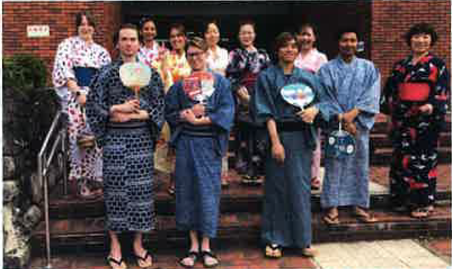 10名の外国の方の参加による浴衣着付け体験教室を開催しました。着付け中のワクワクした様子が微笑ましく、そのあとは町を散策。艶やかで凛とした姿に見とれてしまいました。