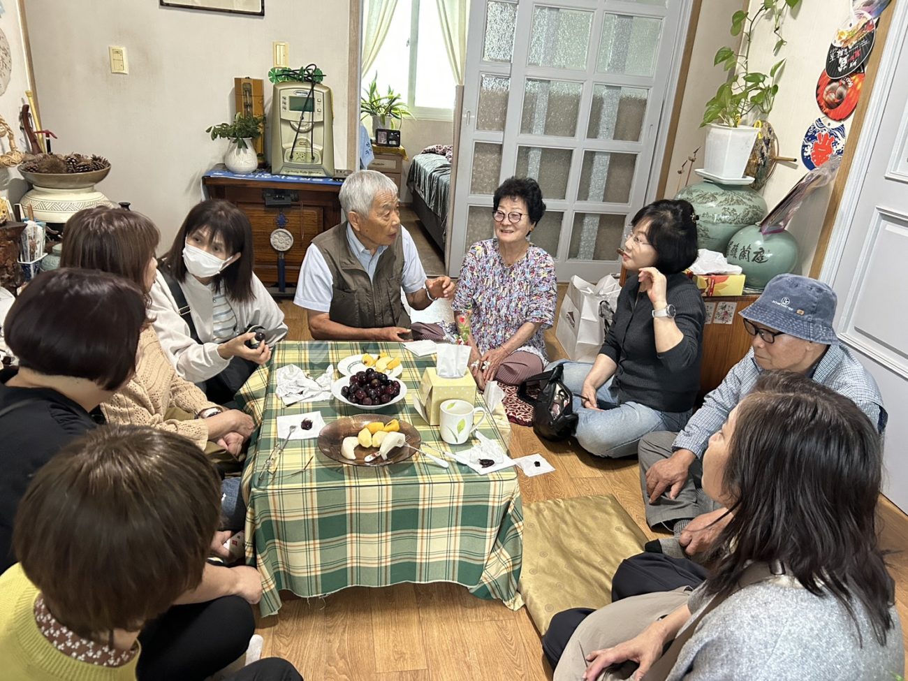 まず釜山でボランティア団体の名誉会長 金三生氏のお宅を訪ね、韓国のお家の中を見学し、歓談しました。